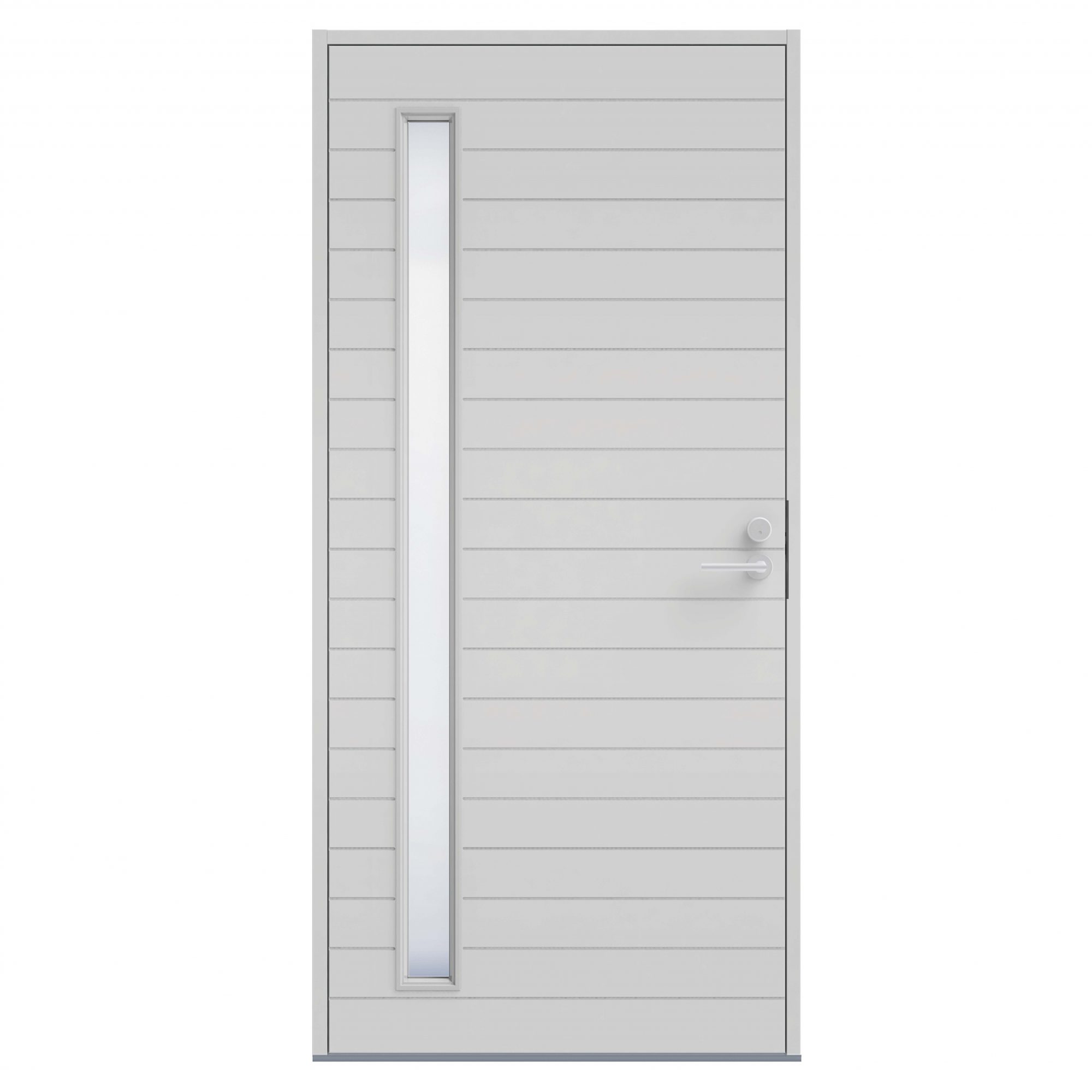 Tähän malliin suositellaan Stockholm-painiketta tai pitkävedintä. Pitkävedin tuo tyyliä ovesi avaukseen ja ulkonäköön. Pitkävedin korostaa oven arvokkuutta ja kruunaa kotisi sisäänkäynnin. Ovi aukeaa avaimella kääntämällä tehden oven käyttämisestä kevyttä ja vaivatonta. Vakiolasina on kirkas lasi.
