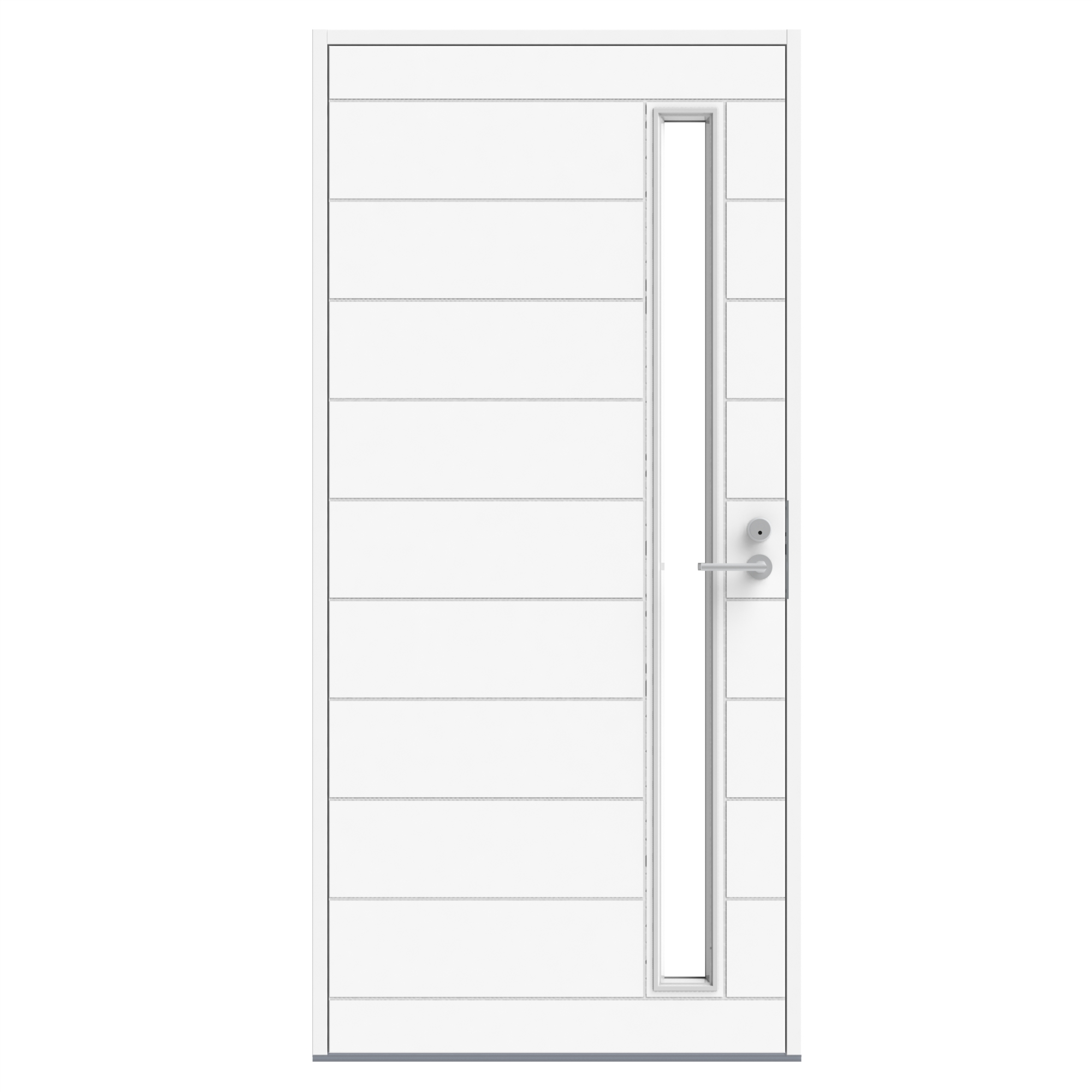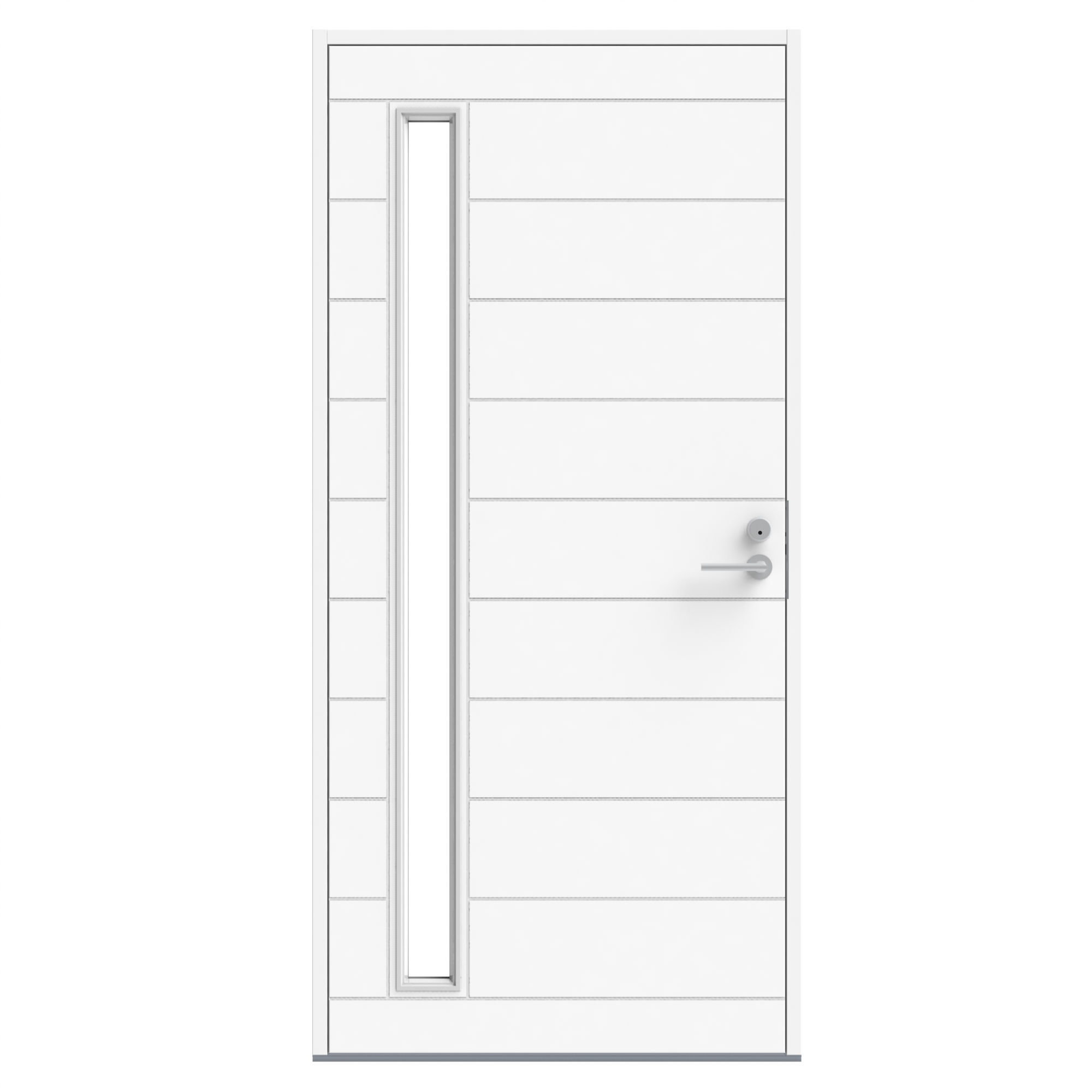 Tähän malliin suositellaan Stockholm-painiketta tai pitkävedintä. Pitkävedin tuo tyyliä ovesi avaukseen ja ulkonäköön. Pitkävedin korostaa oven arvokkuutta ja kruunaa kotisi sisäänkäynnin. Ovi aukeaa avaimella kääntämällä tehden oven käyttämisestä kevyttä ja vaivatonta. Vakiolasina on kirkas lasi.